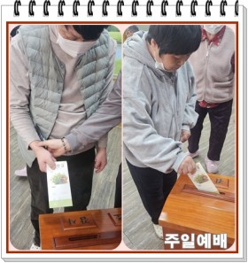 예배 시작 전 각자 준비한 헌금을 헌금 함에 넣고 예배를 준비하게 되었다. 이후 찬송가와 함께 예배가 시작되었습니다. 목사..