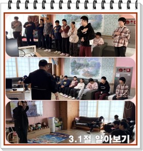 삼일절을 맞아 삼일절 기념행사 방송을 시청하면서 국민의례와 애국가를 제창한 뒤 삼일절이 어떠한 날인지 설명해 주는 영상 자..