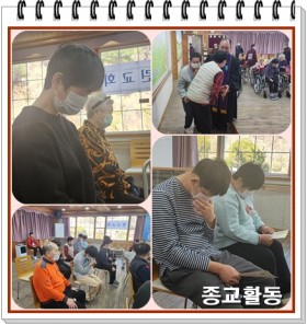 예배당에 들어간 후 요양원 어르신들과 반갑게 인사를 나누며 예배 준비 시간으로 찬송가를 부르는 시간에 박수를 치며 즐겁게 ..