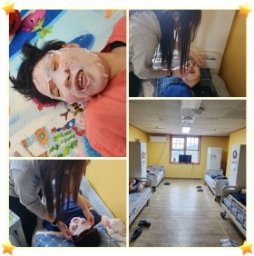 클래식한 노래를 틀어드린 후 냉장고에 넣어 둔 시원한 팩을 준비하여 이용인 들에게 팩을 붙여주는 시간이었습니다. ..