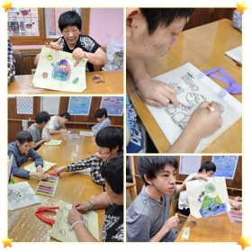 부직포 가방을 사용하여 캐릭터가 들어가 있는 도안에 싸인펜으로 칠해보는 시간을 가졌습니다.가방에 있는 디자인이 조금씩 달라..