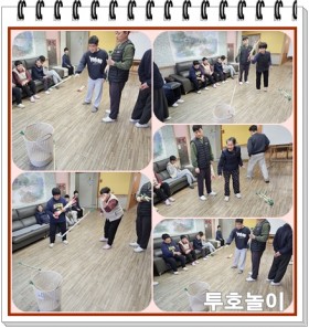 투호 놀이에 대한 설명과 함께 시범을 보이며 시작하였다. 먼저 한 번씩 투호를 던지며 감각을 익혀보는 시간을 가졌습니다. ..